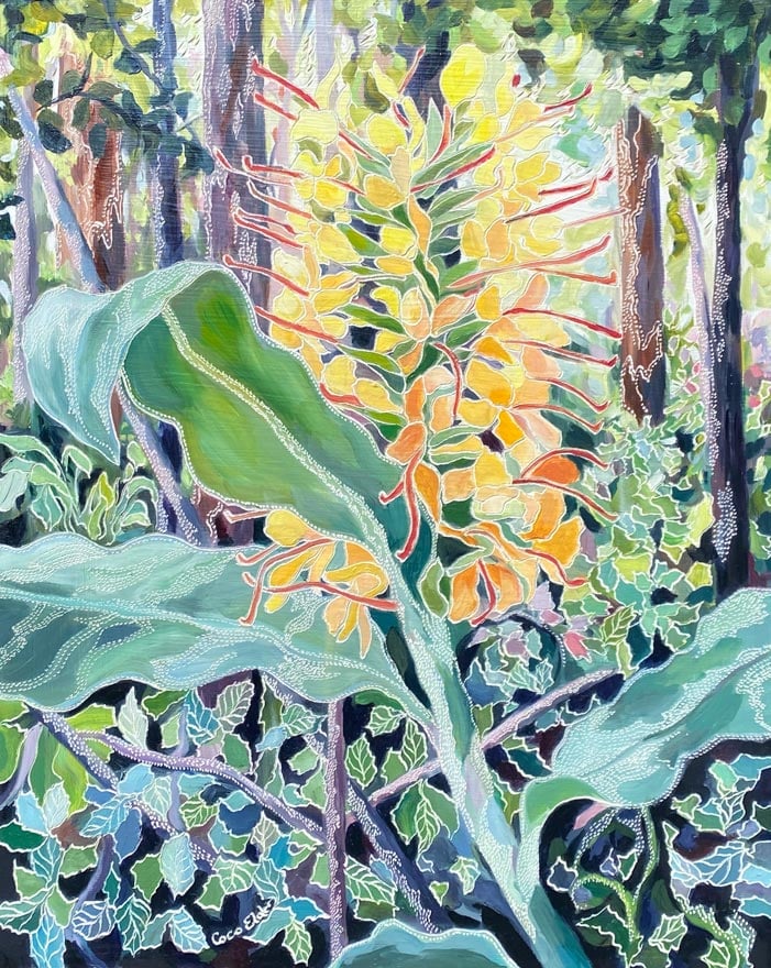 Coco Elder’s love of the Australian bush and reverence for nature inspires her practice. Having lived near Ku-Ring-Gai National Park, and more recently within the Bellingen Shire, the Guringai and Gumbaynggirr country have been a source of subject matter that aspires to her senses.