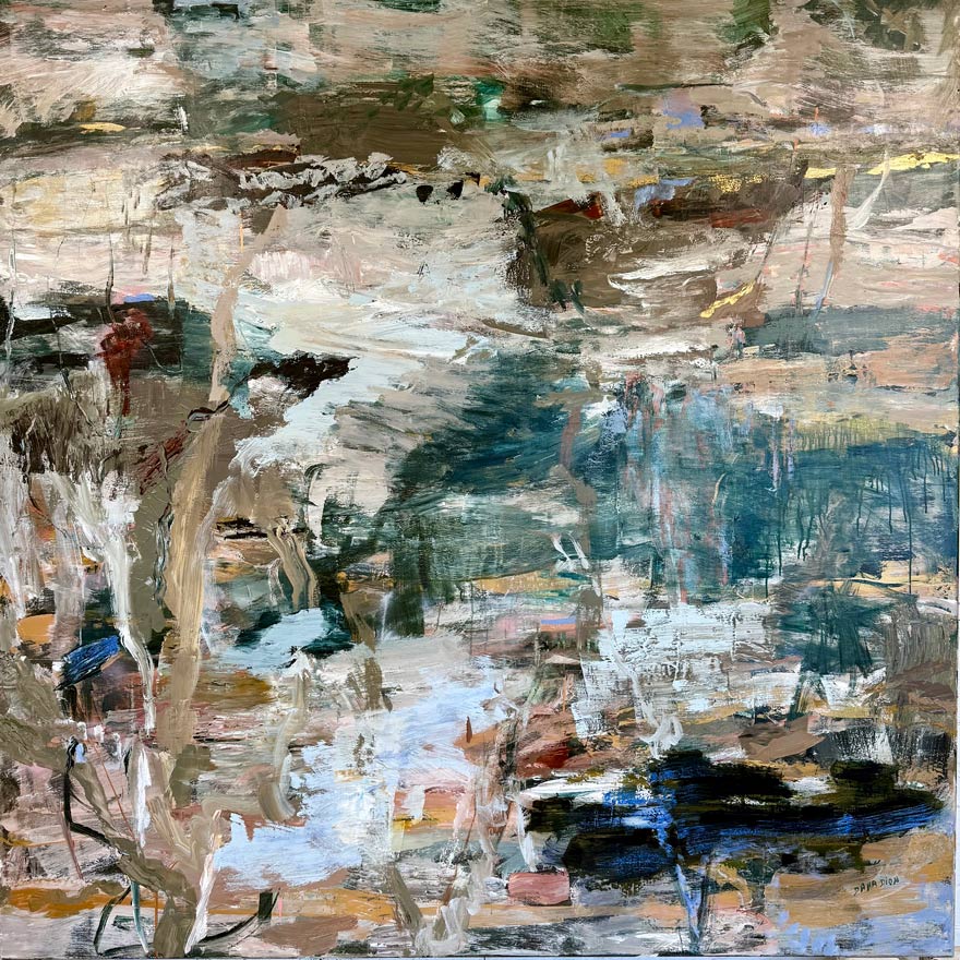 Dana Dion’s paintings aim to reflect her exploration of a variety of landscapes and subsequent quest for inner expression of the experience. Bold physicality of the painterly surfaces are balanced with a sense of vulnerability and a love for the process of painting.