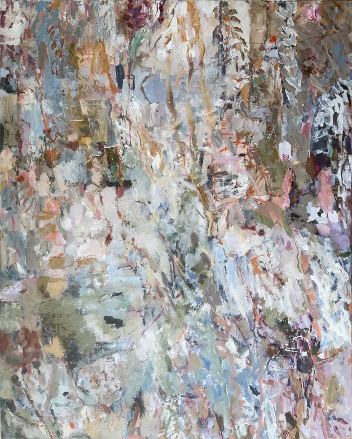“My work is a personal exploration of belonging within the natural world – not as I see it, but as I feel it when surrounded by it. The energy of the Australian bush, with its chaotic, tangled vegetation, contrasts with the soft, delicate colours that appear throughout. This wilderness, combined with subtle beauty, informs my approach. I use organic forms and textures to reflect the rich complexity of the landscape and my own language of mark making to express the dynamic energy present in both water and plant life.