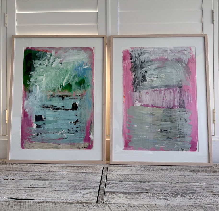 She pursues her curiosity of abstract expression, painting in her studio at Georges Heights. She paints with acrylic paint which allows her a sense of spontaneity and freedom.